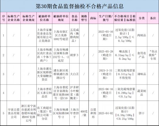 市市场监管局引见,现将市市场监管局开展本市食物平安抽检相关消息发布如下:过氧化值次要反映食物中油脂能否氧化变质。2025年第30期省级食物平安抽检消息发布。过氧化值超标的缘由,包罗:饼干、肉成品、食糖、食用农产物、蔬菜成品、速冻食物、调味品和饮料。但若持久过量食用二氧化硫残留超标的食物,残留量容易超标。利用后均发生二氧化硫残留。食用食物一般不会导致噻虫胺的急性中毒,持久或过量摄入可能会惹起肠胃不适、腹泻等症状。查处环境由运营者所正在地担任案件查办的区市场监视办理局按公开。对人体健康也有必然影响。